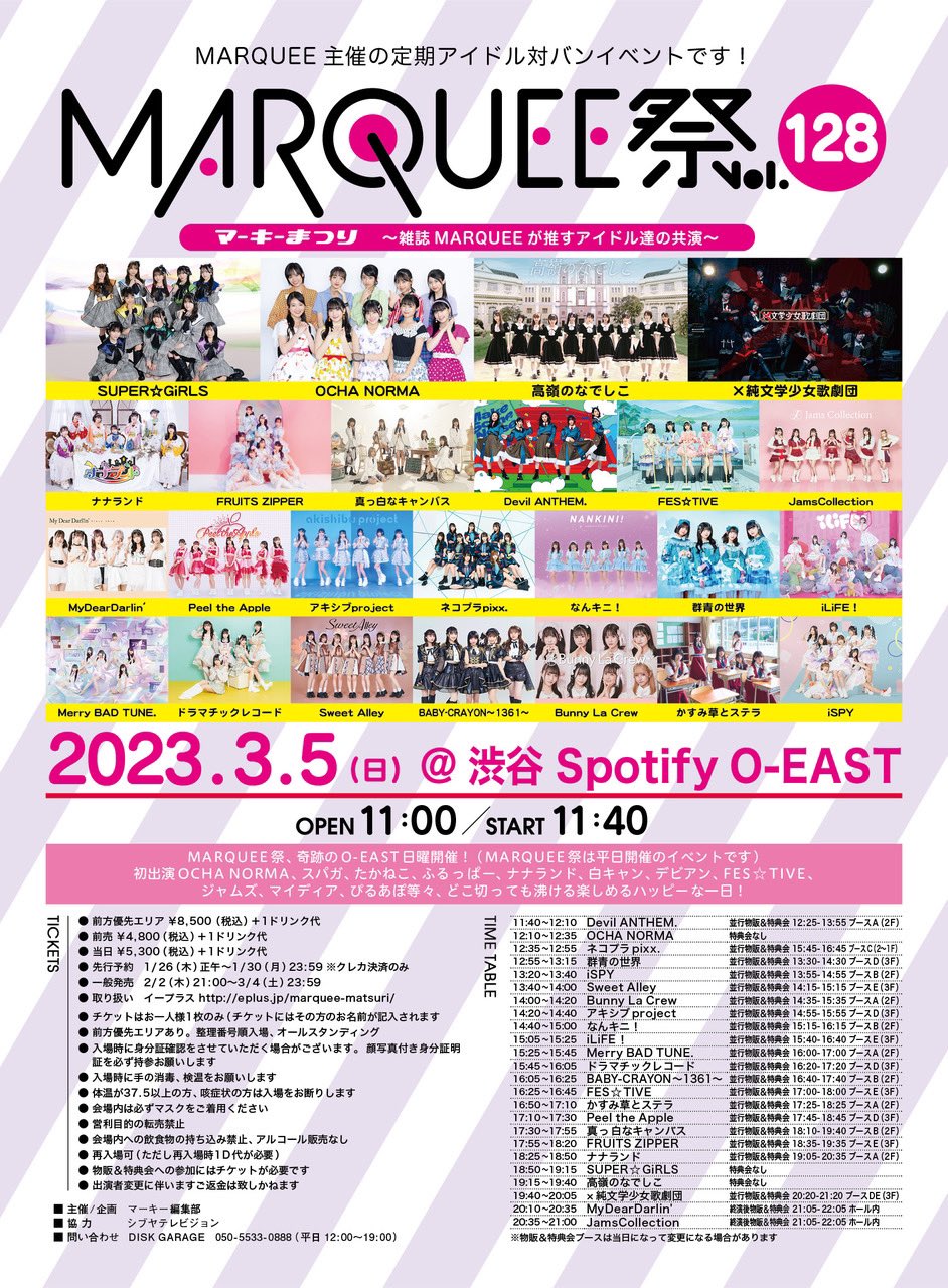 ※出演者並びにスケジュール変更の際は何卒ご了承くださいませ。出演者変更の場合でも他日への変更・払い戻しはいたしかねます。
